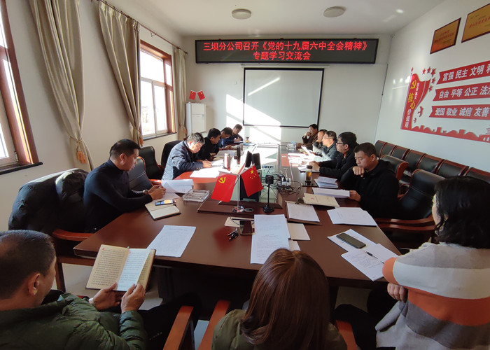 11月23日上午,三坝分公司组织开展“学习贯彻党的十九届六中全会精神”主题党日活动暨党员理论学习交流会。